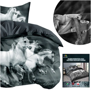 ( number of products: 15 )Do you want your whole family to feel comfortable while sleeping, and the rooms where the beds are located to be perfectly finished in specific arrangements? If so, don't forget to order the right bedding. We provide you with many models to choose from - from bright, to strongly colored and intense, so you are sure to find products that meet your expectations. However, we would like to point out that in this category we have prepared something unusual - each model of bedding available here has been finished in patterns depicting horses, in addition, often flowers, beautiful landscapes and much more. There is no denying that bedding with a horse is a great gift idea for a lover or lover of these animals. So if your son or daughter or someone else in the family loves horses, you should consider buying one of the versions available in this offer.