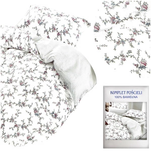 Cotton Satin Bedding in Flowers White A856 200x220NP 3 parts