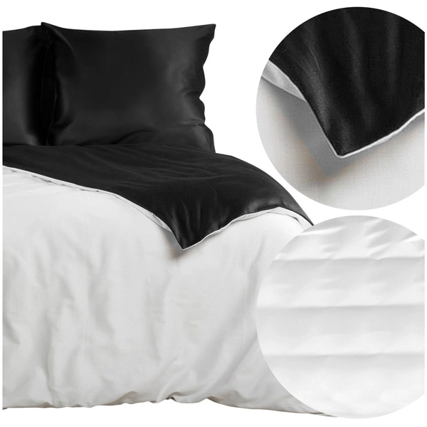 - A set of double-sided bedding, made of great quality cotton satin with a thick weave. The bedding has a smooth surface and a delicate sheen. To the touch it is pleasant, soft and behaves very well during washing. Black and white color.