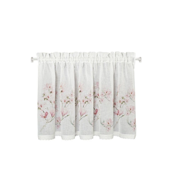 Fashionable bedspread is a great element to spice up the interior, which will bring a cozy atmosphere to the room. Decorated with a motif of pink flowers, it will decorate the kitchen window creating an idyllic atmosphere. It will fit perfectly into a rustic or Provençal style.