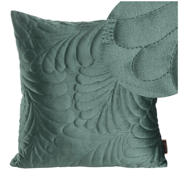 The soft texture of the excellent fabric is decorated with an intense mint color and aesthetic quilting created with the help of a heat-sealing method - hot press - that adds durability to the goods. Made without the use of thread, the motif presents a floral pattern reflecting charming leaves. The underside of the pillowcase is smooth and extremely delicate.