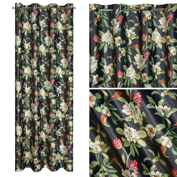 - Curtain from the Alea collection with a flower motif on a blacktle.