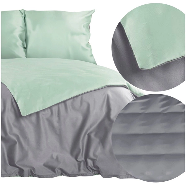 - A set of double-sided bedding, made of great quality cotton satin with a thick weave. The bedding has a smooth surface and a delicate sheen. To the touch it is pleasant, soft and behaves very well during washing. Silver and mint color.