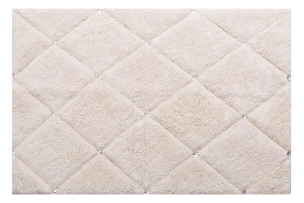 Cotton rug, was produced from 100% natural fabric, which is soft to the touch and provides comfort. The product perfectly insulates the feet from the cool tiles in the bathroom and perfectly absorbs water. The cream color decorated with a geometric pattern and glittering crystals is a combination of fashionable design, which will especially fit into interiors with glamour decor. Thus, it can also serve as a decorative element of the living room or any other room.