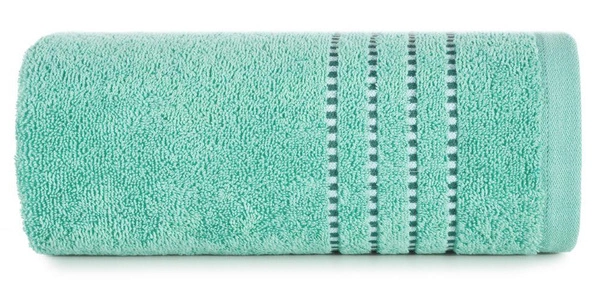- Towel in mint color with decorative stripes.