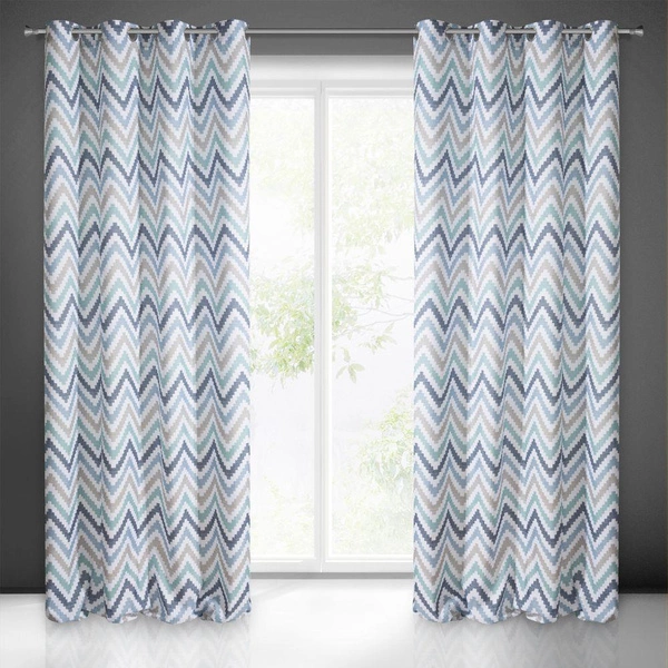 Lightweight curtain with muted colors. Geometric pattern with minimalist character. The degree of blackout low. Very easy to iron. Quickly dries width: 140 cm, length: 250 cm, color: blue, Weight: 75 GSM, Composition: 100% polyester
