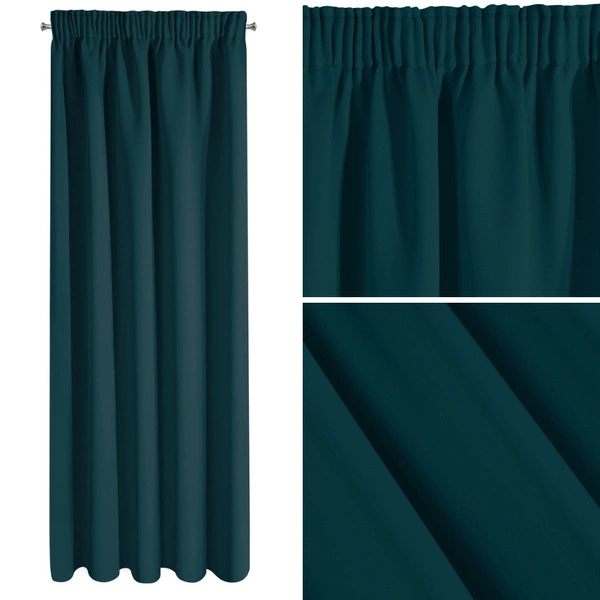 Logan is made of dense, matte material, without unnecessary decorations, so it will universally match both modern and traditional interiors. The petrol color will add an elegant atmosphere to your home. It is hung with a tape, which will ensure the comfort of replacement and allows you to more easily arrange even waves on the product.