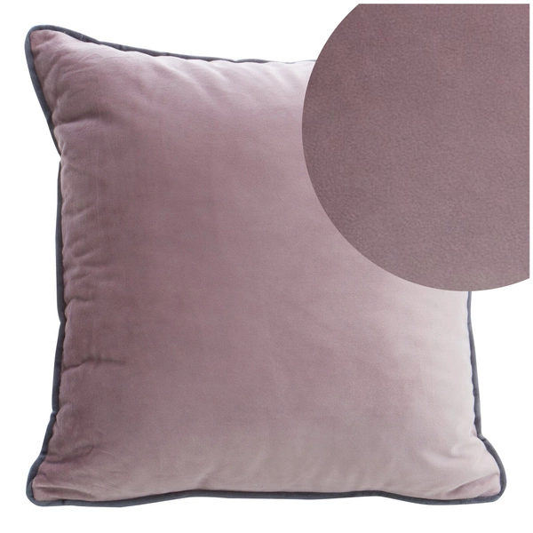 Velvet pillowcase decorated with piping. Powder color. Mel pillowcase was made of smooth and soft velvet. It will be a wonderful accessory that will enhance the look of a room, decorated in a modern style. The decorative piping adds elegance and charm to the product. The pillowcase is easy to wash and iron, so it always looks aesthetically pleasing on the bed or sofa.