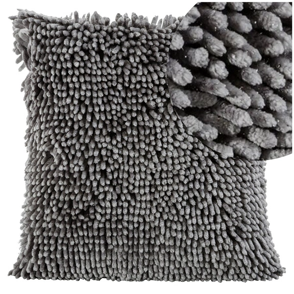 - Shaggy pillowcase in fashionable steel color with decorative tassels.
