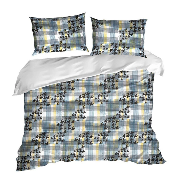 The product is perfectly decorated with a beautiful shade of gray, white and yellow. The background is further decorated with a checkered print placed all over the goods. The other side is uniform. Through the satin weave of the fabric the pattern gently shines. The piece created in this way is an elegant and minimalist accessory, which brings conducive torelaxation, harmonious mood to the room.