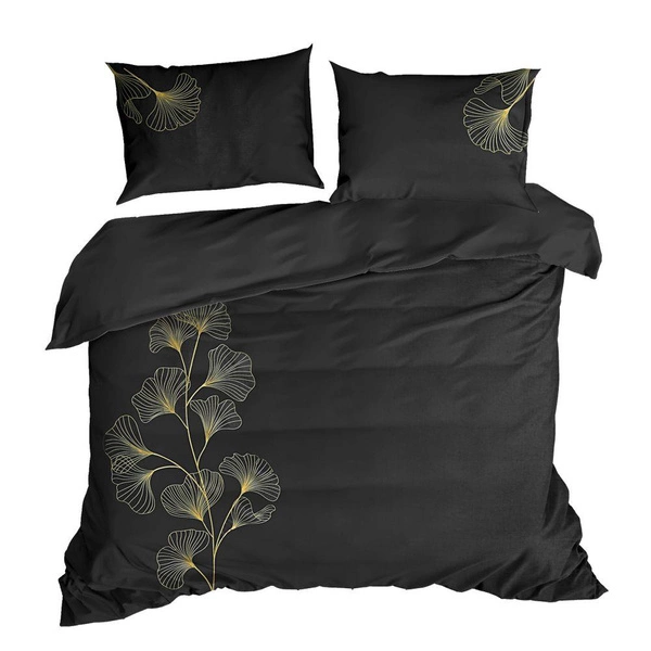 Zestaw wysokiej jakości pościeli bawełnianej zdobionej pastelowym haftem z pastelowym motywem kwiatowym. Elegancka pościel zapinana na zamek błyskawiczny. szerokość: 220 cm, długość: 200 , 2 szt. 70 cm, kolor: czarny/złoty, Gramatura: 125 GSM, Skład: satyna 100% bawełna