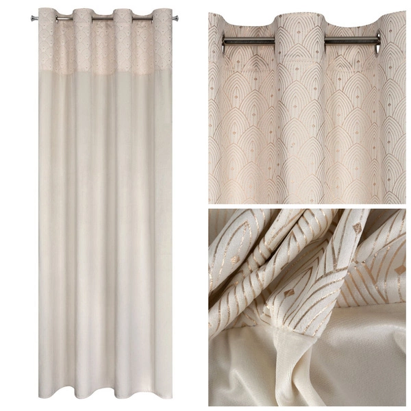 The cream pattern of the Agnes curtain is decorated with an oriental-style print. Placed in the upper part of the product, the motif will blend especially into modern interiors, adding to its charm. Velvet velvet fabric provides good shading, so you will protect yourself from the sun's rays or the sight of neighbors. Practical grommet suspension means that the curtain will lay beautifully on the curtain rod, and the application of the product is very fast and functional. Thanks to the Agnes curtain you will create an original decor of the room and introduce a unique atmosphere.