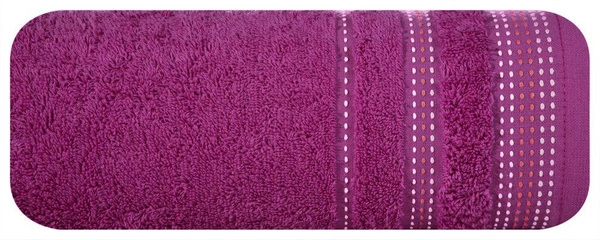 Single-colored towel made of soft and absorbent cotton fabric with terry weave decorated with colorful bordure in the style of fastidiousness.