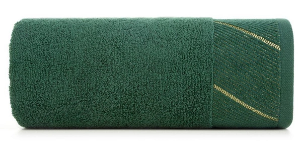 - Towel in bottle green color with chenille edging in shiny stripes.