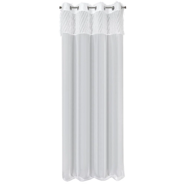 A delicate curtain combining a wide strip of crepe velvet with a lightweight voile. A very elegant, yet subtle window decoration. The curtain from the Amira collection is a combination of two fabrics, decorated with shiny mohair threads. Snow-white color will add chic and elegance to the interior, blending perfectly with other accessories in modern, Scandinavian or glamour style. Hanging on grommets allows you to quickly change the window decoration, arranging the curtain in beautiful, soft and regular waves.