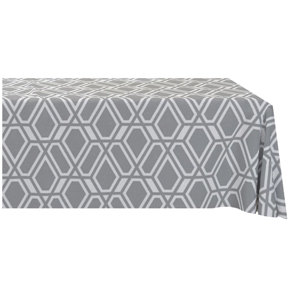 - Tablecloth from the Panama collection showing geometric patterns on a gray background.