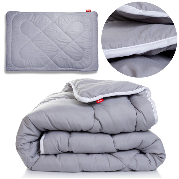 The duvet covered with 600 g/m2 microfiber fabric is a highly breathable material. It is not slippery but pleasant to the touch. Filled with silicon fiber, it retains its fluffiness for a long time. Lightweight and breathable, it has anti-allergic properties, making it perfect for those who cannot tolerate natural down. It ensures warmth and air circulation. It is finished with piping and packed in a suitcase, making it suitable for a gift. Ideal for winter.