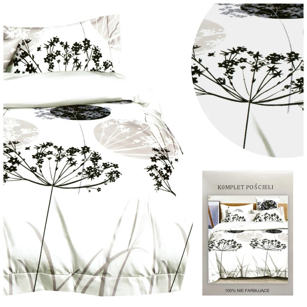The bedding is produced using the latest 3D technology from high-quality microfiber, making it pleasant and soft to the touch. The product features exceptionally vivid and saturated colors that will delight even the most demanding customers. The bedding stands out with its trendy and elegant design. It is zipped. The set showcases flowers on a white background.