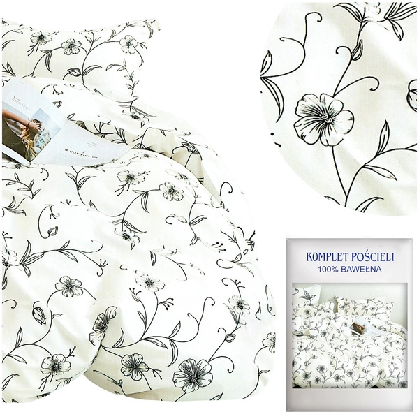 Cotton satin bedding is a high-quality fabric with a satin weave of cotton fibers, providing exceptional softness. This type of fabric is distinguished by a delicate sheen and is velvety to the touch. The high structure of the fibers allows air to circulate freely, so that, in winter it gives us warmth and in summer it cools. The natural composition ensures that our skin will be able to breathe freely under it. An additional advantage of the bedding is its ease of use as it is not slippery, it adheres very well to the quilt. The set shows densely arranged flowers on a cream background.