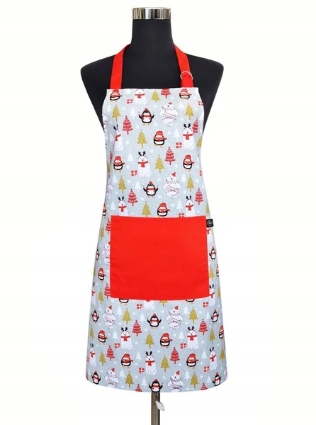 Kitchen apron size 60x75 cm is made of natural cotton yarn of 220 g/m2. It has the texture of a thick canvas, while it feels slightly rough and stiff to the touch, which is its unique advantage. It is a classic model of apron with a pocket on the front and binding on the back.