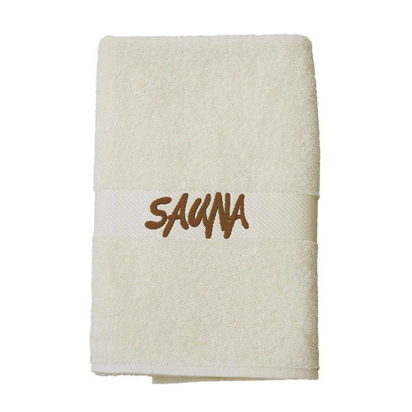 The simple yet stylish design of the towel with an embroidered "Sauna" inscription adds elegance, making it a great decorative element for your bathroom.