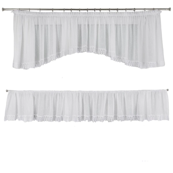 - ^^ Elegant lace - a delicate finish that adds a sophisticated touch to any interior ^^ 2-in-1 set - a bedspread and curtain in one package for complete harmony of window decoration ^^ Universal White - pure white to match many arrangements
