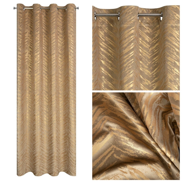 The decorative, metallic, geometric print gently shimmers in shades of gold. It will certainly catch the eye of lovers of tasteful decorations!