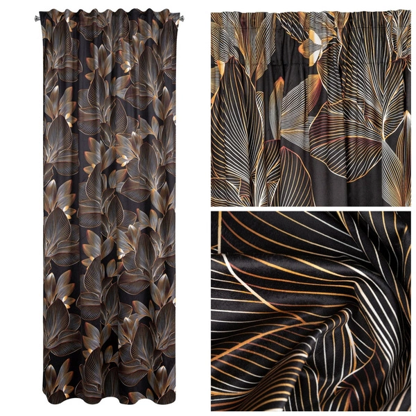 - Velvet curtain on tape with hidden suspenders with floral print from Larisa collection.