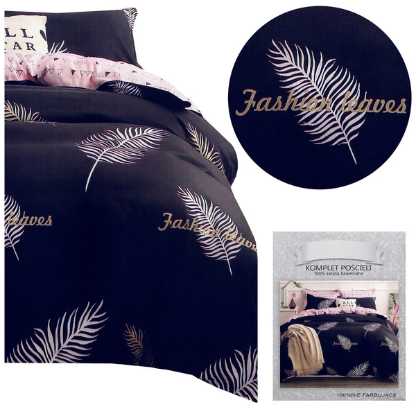Melita bedding is made of cotton satin, and thanks to a special weave it has a light sheen. It is soft and pleasant to the touch, yet warm , and has exceptionally vivid and saturated colors that will delight the most demanding customer. The bedding is distinguished by its fashionable and elegant design, so it is sure to fit into any interior. The dark purple set features pink palm leaves, while the other side is pink with small triangles.