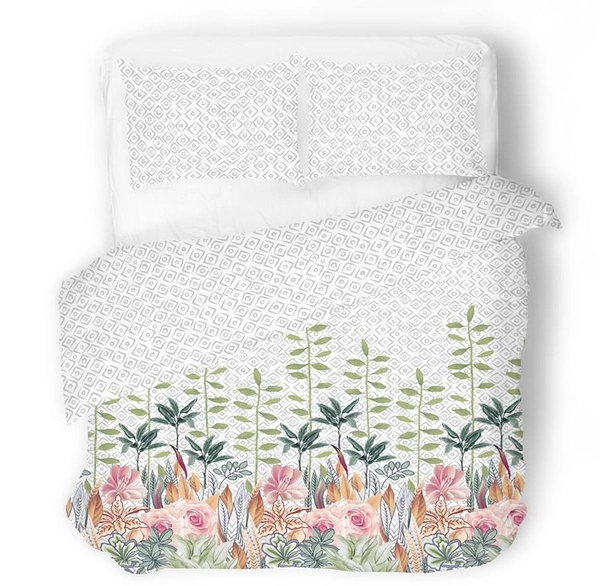 - ^^ Satin weave - provides smoothness to the bedding ^^ Pleasant to the touch - to lull you to sleep ^^ Varied design - flowers and gray geometric pattern on white background