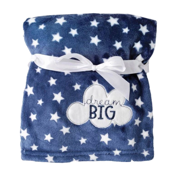 - ^^ Soft - due to pleasant to the touch microfiber ^^ Cute print - white stars on a navy blue background and an embroidered cloud ^^ Gift - will prove useful as a gift, thanks to the nice packaging