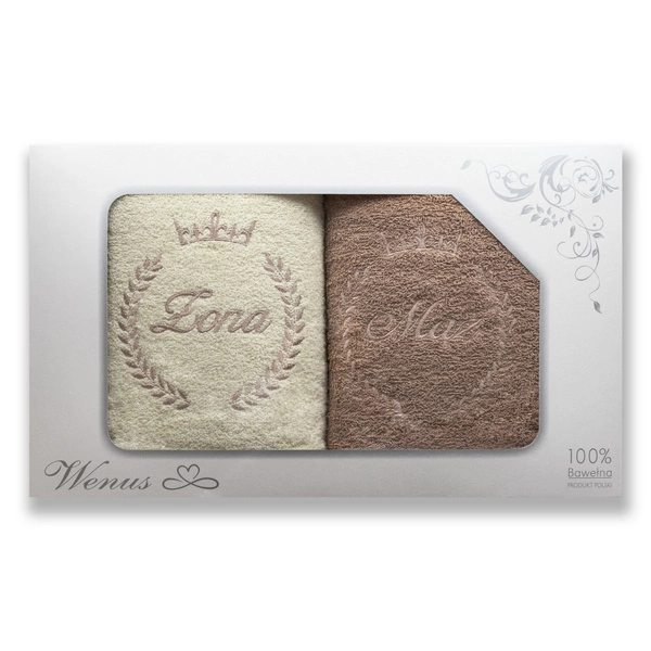With their color scheme they will fit into classic as well as modernly decorated bathrooms, and the inscription "Wife" and "Husband", over which there is a crown, will additionally bring a smile to the face and add variety to the decor. Such towels are sure to attract the attention of guests with their visual qualities.