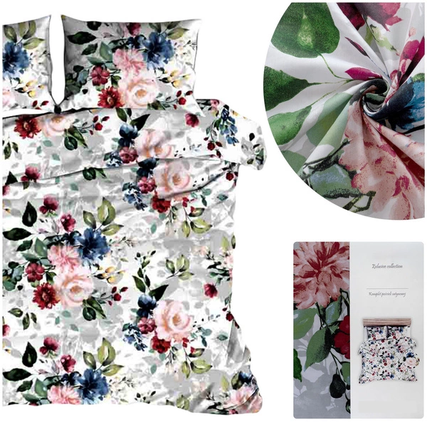 The material is durable and durable, making the bedding more resistant to stretching, and the colors retain their intensity even after repeated washing. Easy to clean and sewn zippers make it very practical. Fashionable design depicting floral compositions on a light background makes the bedding look very tasteful and will decorate the interior of your bedroom.