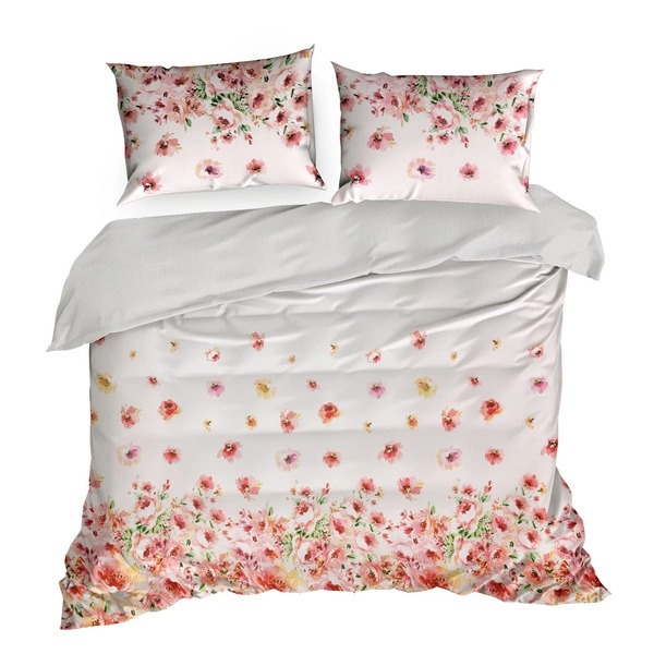- ^^ Cotton satin - is a great quality material that guarantees a comfortable night's sleep ^^ Modern design - charming flowers on a bright background ^^ Zipper - allows you to quickly change the bedding