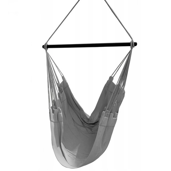 The structure is made of cotton-polyester fabric, which provides high comfort, as well as durability. The hammock chair is suspended from strong cords that allow you toswing freely.