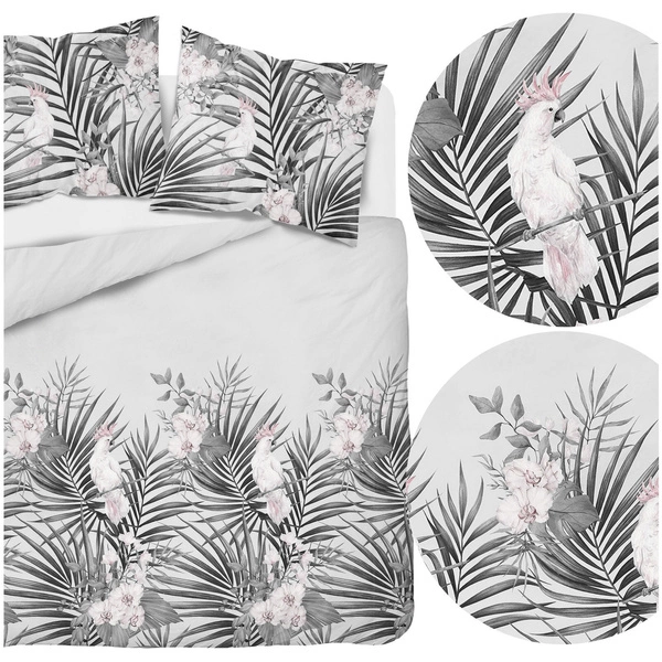 ASTI Bedding set is a positive surprise with the new collection. The bedding depicts exotic leaves, flowers and parrots. Interesting patterns, rich muted colors and very good quality of fabric will make the bedding delight us. The composition of the fabric is 100% cotton, so the bedding is durable and pleasant to the touch, in addition, it does not irritate the skin. Even after many washings the set does not lose its colors and does not change size. The product has a practical zipper, which will make it easier and shorter to change the bedding. Before the first use, the set should be washed, turned inside out to preserve the colors, life and avoid abrasions from the drum.