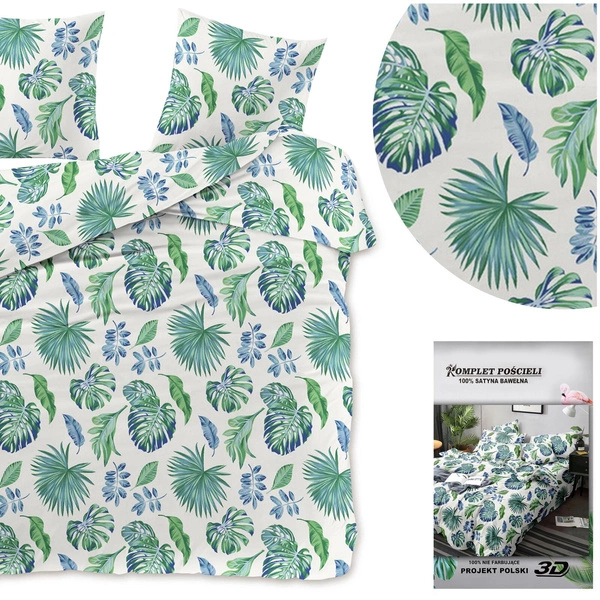 The print that is on the material was applied with 3D technology. Excellent color rendering and modern designs are the hallmarks of this collection. The set features a print depicting tropical leaves.