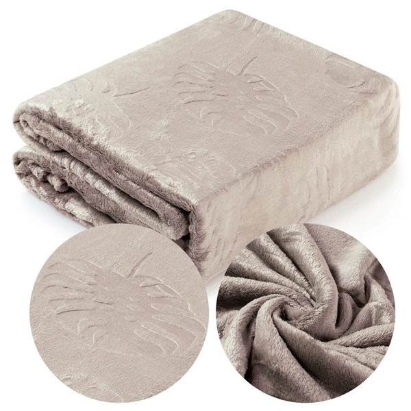 The product in a beige shade shows a fashionable tropical embossing depicting monstera leaves. The modern design makes the blanket a unique decoration that will refresh the look of any room. Thanks to the pleasant-to-the-touch fabric from which it is made, it will prove ideal as a pleasant covering on cold days and mornings. It can also be used as a bedspread on the sofa or bed.