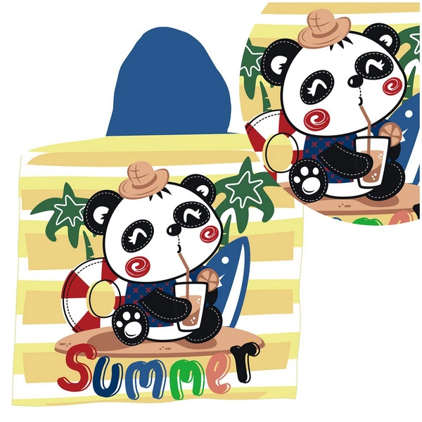 The bath towel is made of pleasant to the touch microfiber, which is friendly to the skin and does not cause irritation. Due to its properties, it dries very quickly and perfectly absorbs water, quickly drying the body after bathing. An additional advantage is the sewn hood, which will protect your child from the wind, for example, while relaxing on the beach. The colorful motif, depicting a holiday panda, will make the toddler gladly dress in the poncho. As a result, he won't waste time wiping, and parents are reassured, knowing that the child won't get cold. The towel is perfect for the beach, pool or for everyday use.