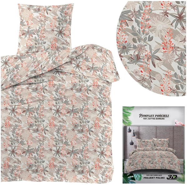 The print that is on the material was applied with 3D technology. Excellent color rendering and modern designs are the hallmarks of this collection. On the set there is a print depicting flowers on a white and beige background.
