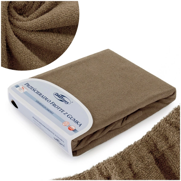 Terry sheet with elastic band of high weight and quality knitted fabric. Made of soft loop fabric in 82% cotton and 18% polyester. Adapted for a mattress with a height of up to 20 cm. Supply for mattress height is not added to the basic size. The sheet has elastic all over, sewn in the tunnel, thanks to which it perfectly adapts to the mattress and is always in place. It performs perfectly in use, during sleep it does not roll up or pull down anywhere, providing high comfort. It is air permeable, dries quickly and does not require ironing. It does not mold or lose color even after many washings.