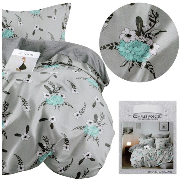 Melita bedding is made of cotton satin, and thanks to a special weave it has a light sheen. It is soft and pleasant to the touch and has extremely vivid and saturated colors that will delight the most demanding customer. The bedding is distinguished by a fashionable and elegant design, so it is sure to fit into any interior. The set depicts flowers on a gray background.