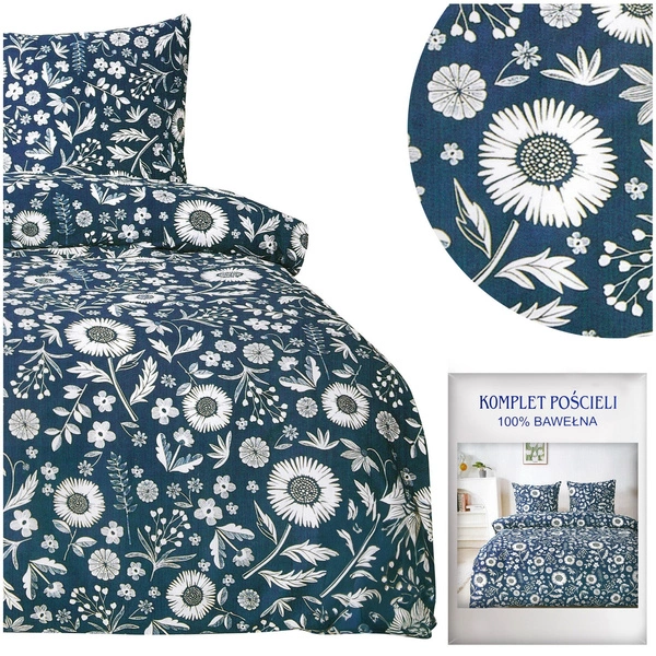 Cotton satin bedding is a high-quality fabric with a satin weave ofcotton fibers, providing exceptional softness. This type of fabric is distinguished by a delicate sheen and is velvety to the touch. The high structure of the fibers allows free air circulation, so that, in the winter it gives us warmth and in the summer it cools. The natural composition of ensures that our skin will be able to breathe freely under it. An additional advantage of the bedding is its ease of use as it is not slippery, it adheres very well to the quilt. The set in a shade of blue depicts flowers.