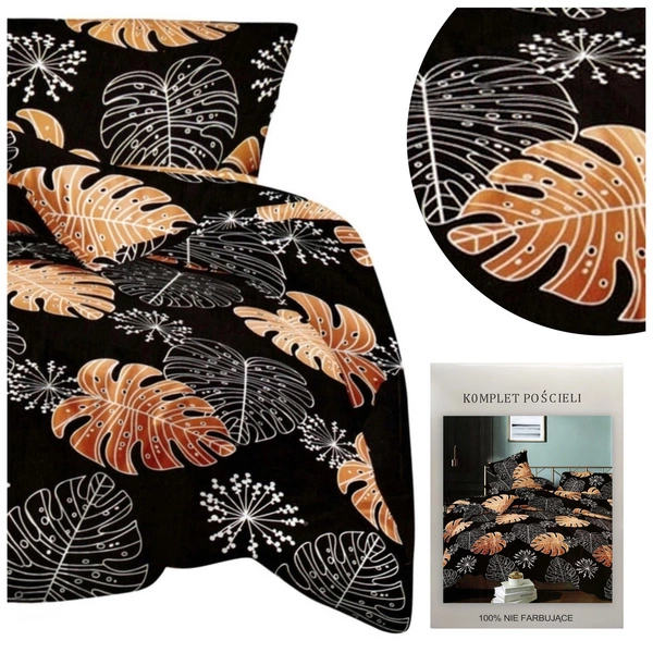 The bedding is manufactured with the latest 3D technology with high-quality microfiber, so it is thick and soft to the touch, which makes it pleasantly wrap the body and warm during the cold nights. The product has extremely vivid and saturated colors that will delight the most demanding customer. It is distinguished by fashionable and elegant design, which attracts the eye and diversifies the bedroom interior. The presented set shows leaves on a black background. It is fastened with a zipper, which greatly facilitates its replacement.