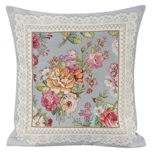 It is made of thick fabric, decorated with embroidered, colorful flowers and leaves. In addition, the sides feature a lace motif. Any room with the use of this pillowcase will acquire a unique atmosphere.