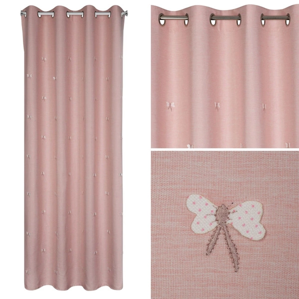 Create a space full of joy and safety for your child with the WENDY curtain. This charming accessory with three-dimensional bows will bring a playful atmosphere to any room. Made from softly pink fine woven fabric, the curtain not only effectively covers the window but also protects the interior from excessive sunlight, creating a pleasant ambiance.