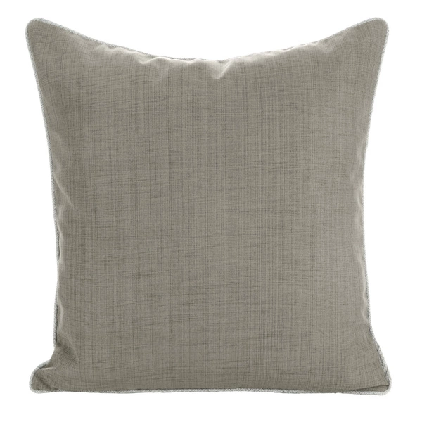 Made from durable polyester, which safeguards its longevity, it fearlessly faces the surprises of the weather, providing stress-free use on the balcony, terrace, or in the garden. Its color scheme harmonizes beautifully with the surrounding greenery, introducing an element of tranquility and natural elegance. The decorative silver piping and unique fabric texture add style and charm to it.