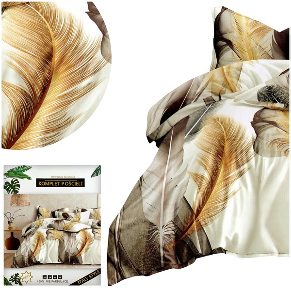 Excellent color reproduction and modern patterns are characteristic features of the Dalwin bedding. Lovers of unique motifs will appreciate their creativity, while fans of stylish colors will be delighted. The set, due to its simplicity and elegance, will meet the expectations of every customer. The presented model features feathers on a cream background.