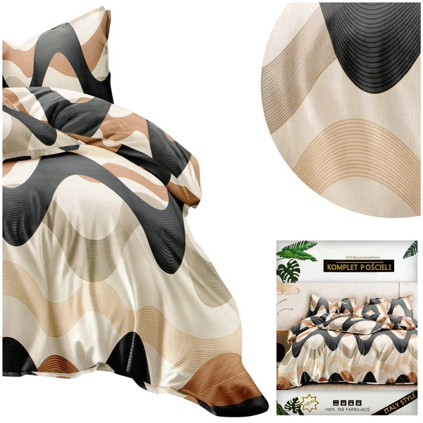 Excellent color representation and modern patterns are characteristic features of the Dalwin bedding. Lovers of unique motifs will appreciate their creativity, and fans of stylish colors will be delighted. The set, thanks to its simplicity and elegance, will meet the expectations of every customer. The presented model features geometric patterns in beige and gray colors.