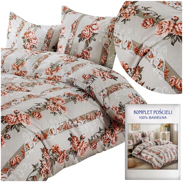 Bedding made of cotton satin is a high-quality material with a satin weave from cotton fibers, providing exceptional softness. This type of fabric is characterized by a delicate sheen and is velvety to the touch. The high fiber structure allows for free air circulation, keeping us warm in winter and cool in summer. The natural composition ensures that our skin can breathe freely underneath. An additional advantage of the bedding is its ease of use, as it is not slippery and fits the duvet very well. The set in shades of gray and orange features a floral motif.